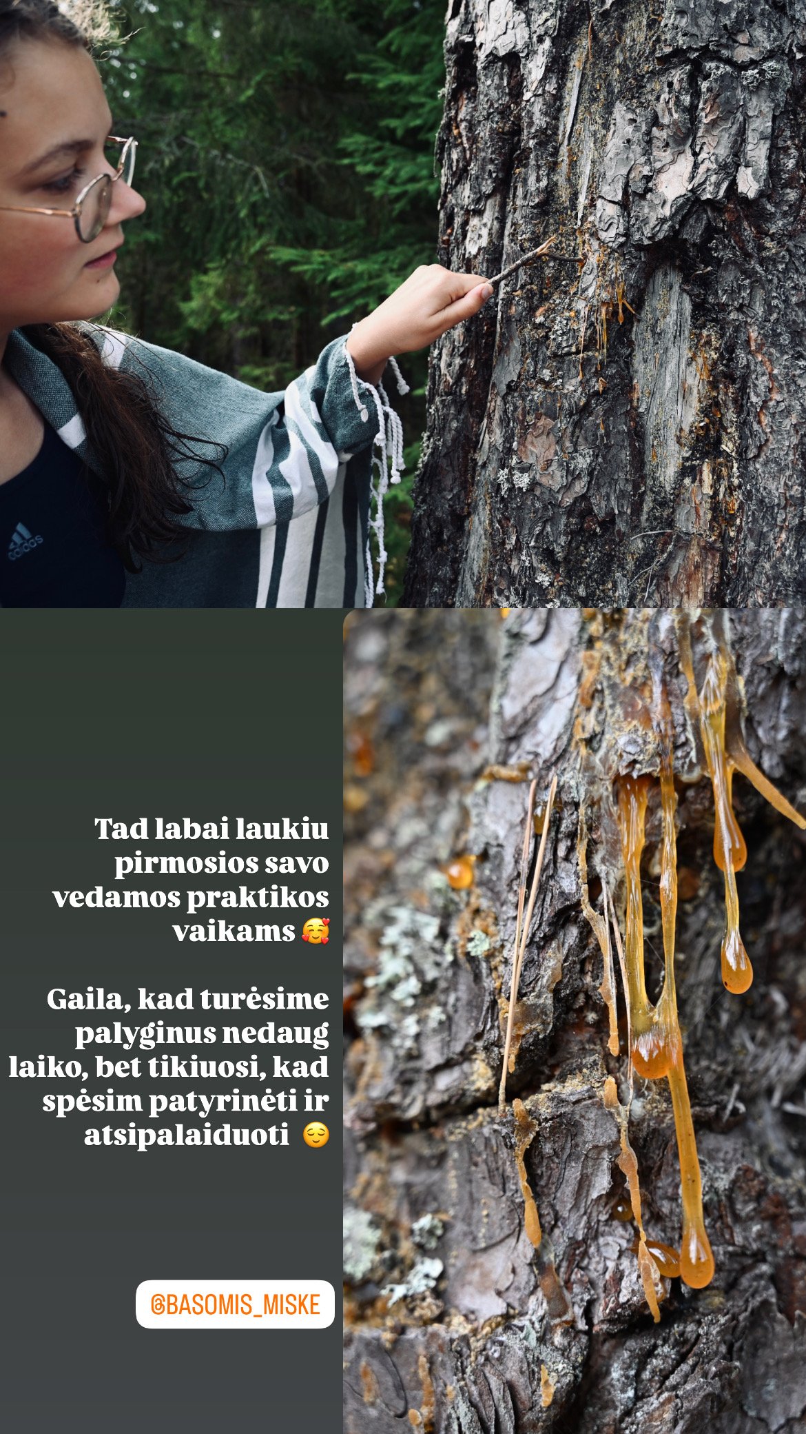 Miško maudynes vedu tiek lietuvių, tiek anglų kalbomis, visada pirmoje vietoje laikydama diskretiškumą ir dalyvio asmeninės erdvės pagarbą – dėl to mano vedamų praktikų metu retai daromos nuotraukos, nes šios praktikos man yra tylus ir intymus pokalbis su savimi ir su mišku, kuris ne visada būna lengvas ar malonus.