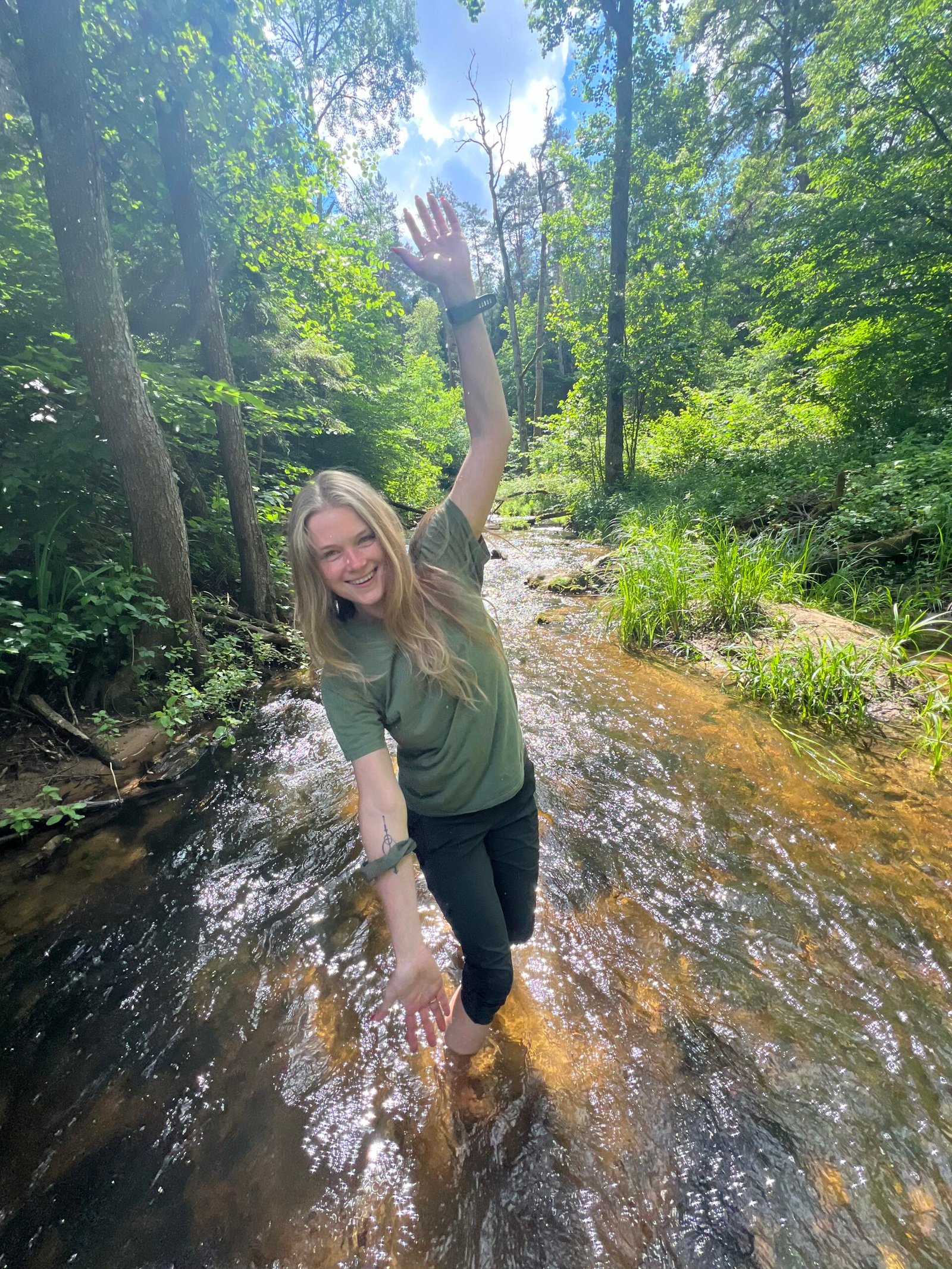 Kiekvienoms miško maudynėms ruošiuosi tarsi pati būčiau dalyvė: iš anksto atvykstu į miško maudynių vietą/taką, kvietimus kuriu pagal savo pojūtį, o scenarijus gimsta natūraliai iš mano pačios sąlyčio su konkrečia miško maudinių vieta. Mano vedamų miško maudynių metu dalyviai ilsisi hamakuose, basomis žengia miško paklote ar braido po tekantį upelį ir įsižemina – tai mano būdas sukurti saugią, jautrią ir gyvą patirtį kiekvienam!